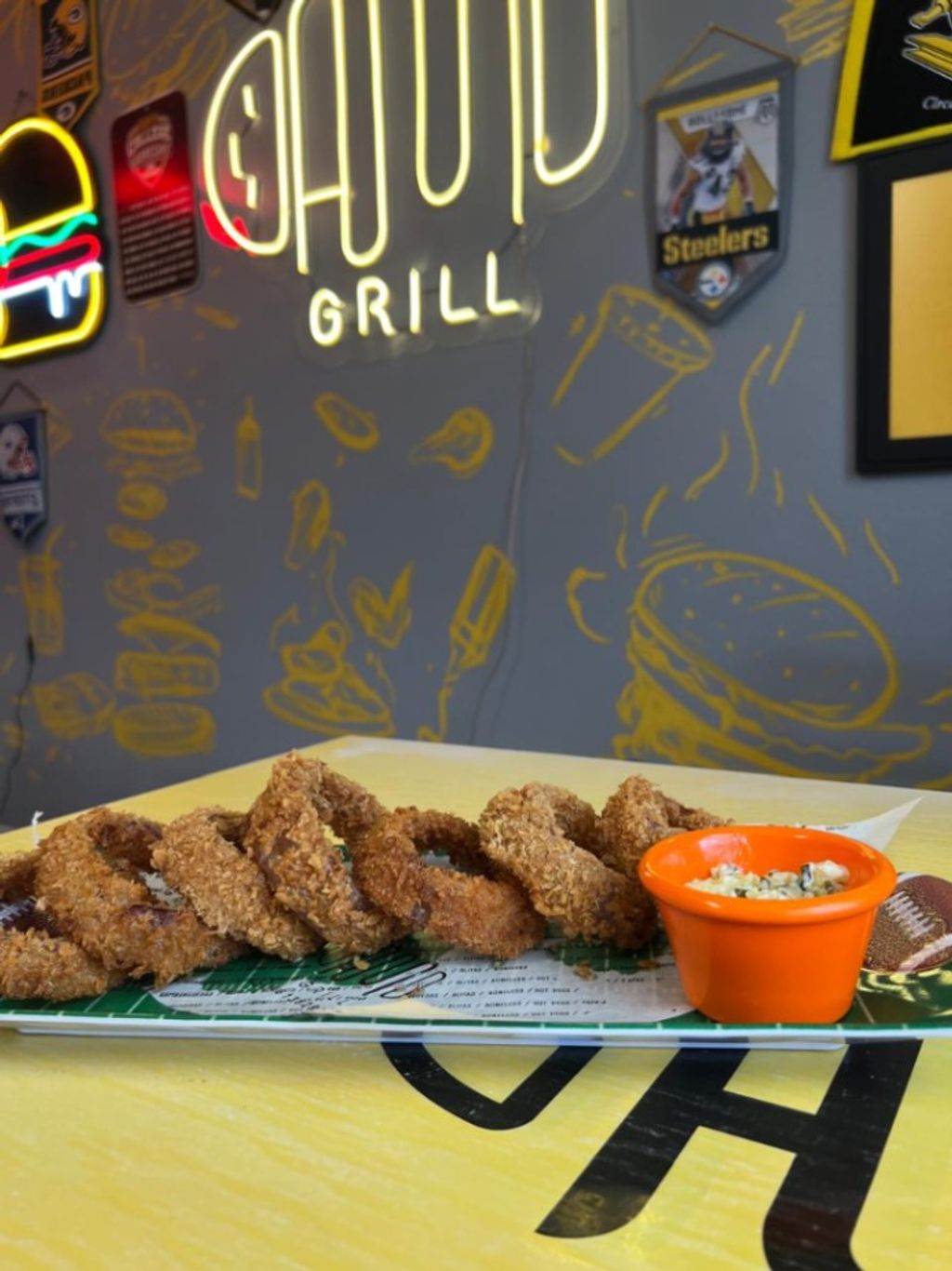 Crujientes rodajas de cebolla morada crocantes al panko, mediante una emulsión artesanal de harina, huevo y panko japonés. (5 pzas).