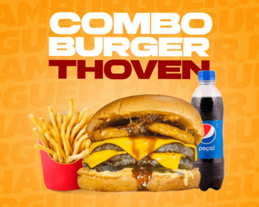 Hamburguesa Burgerthoven, con papas y refresco 355 ml