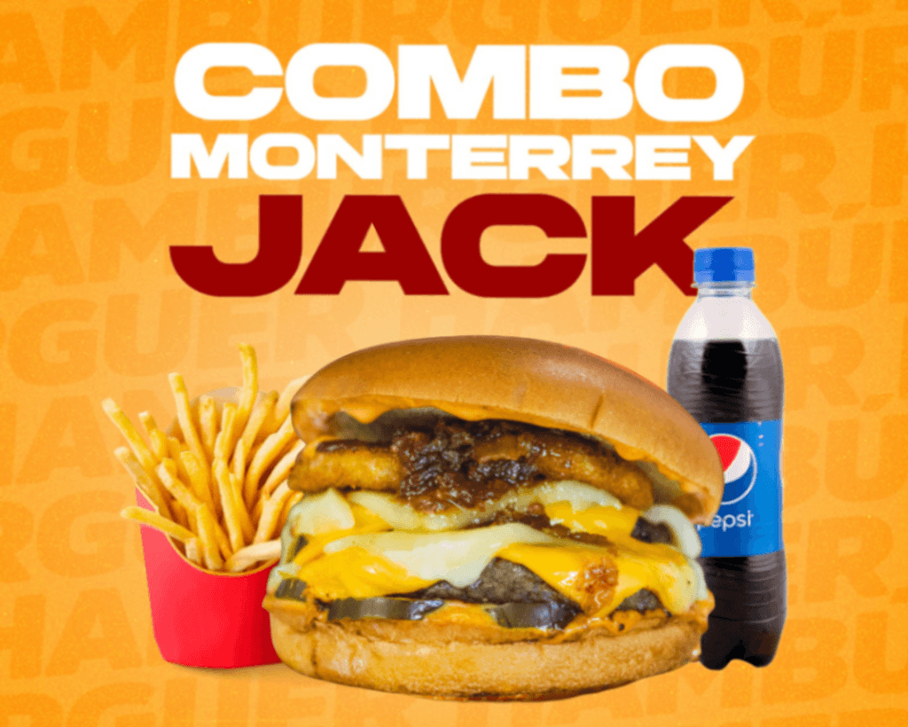 Hamburguesa Monterrey Jack, con papas y refresco