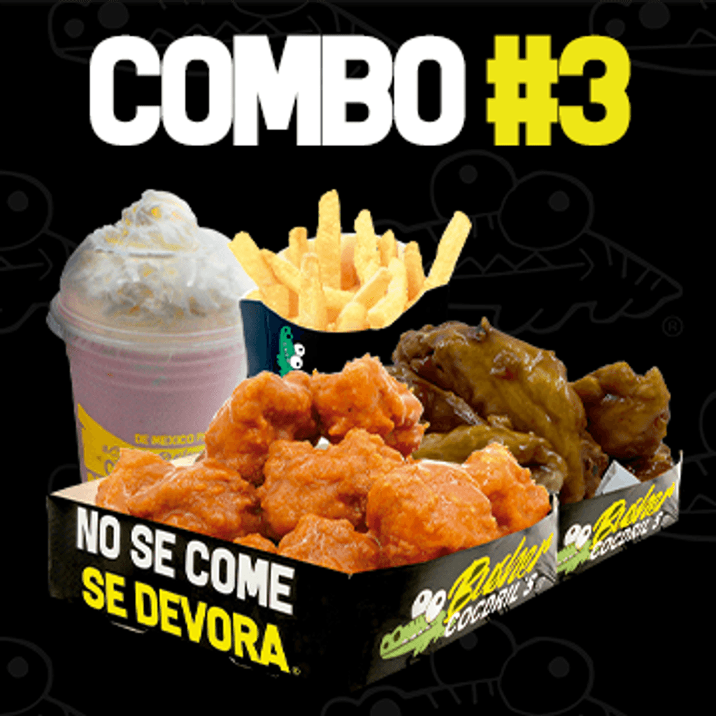 8 Boneless (280g) ó 350g de Alitas, 150 gramos de Papas a la Francesa, y una Malteada a elegir (16 oz).