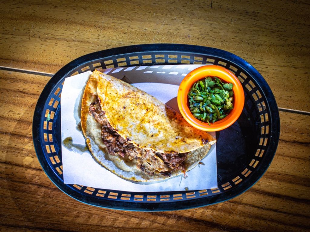 Taco de barbacoa de birria de chivo tatemada