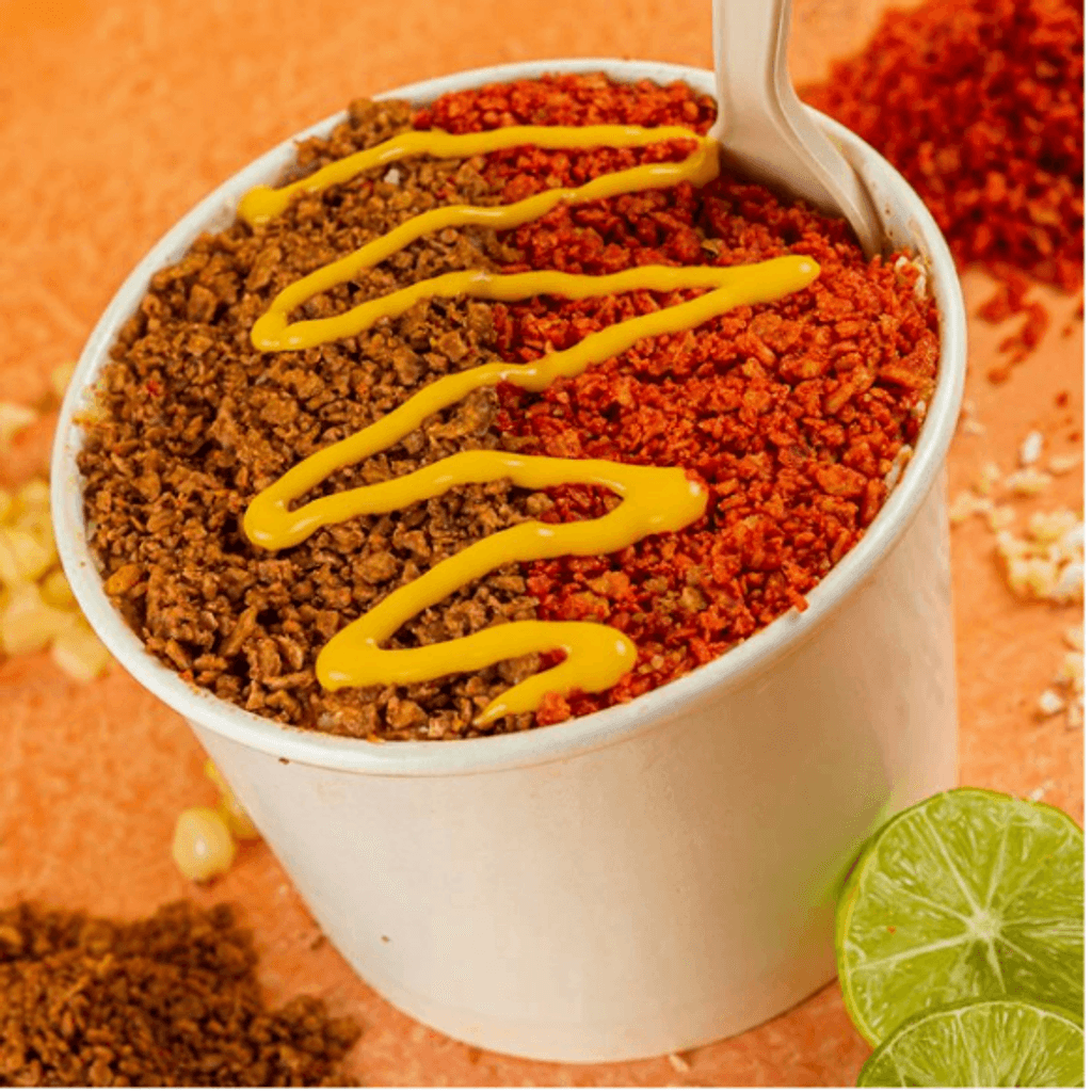 Esquite clásico con limón mayonesa y queso, personalizado con tus salsas y sazonadores favoritos y agrega la fritura de tu elección (puedes elegir 2)
