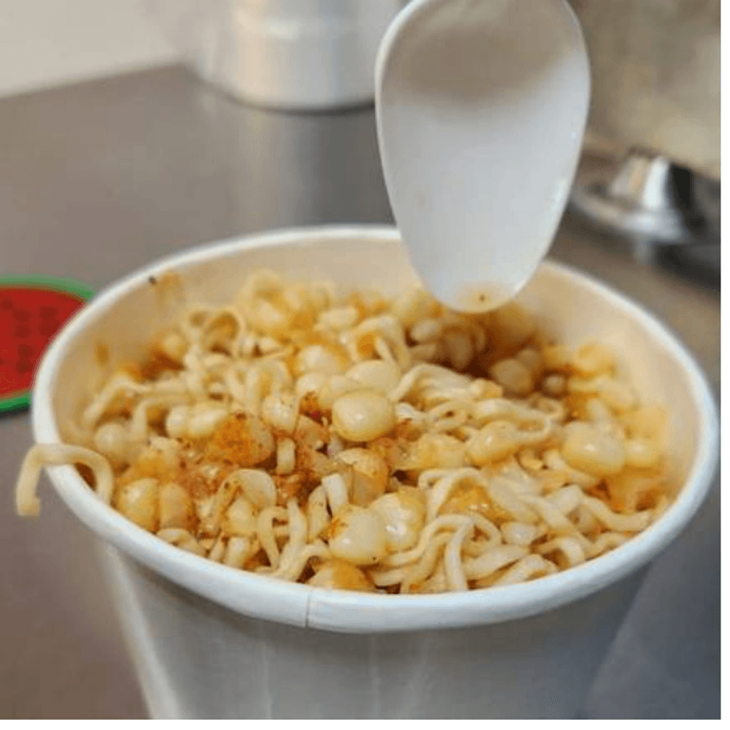 Maruchan a tu elección y esquite preparado a tu gusto.