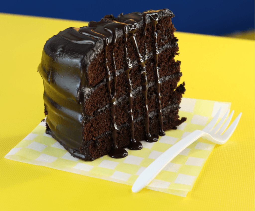 Una buena porción del clásico pastel de chocolate estilo bruce