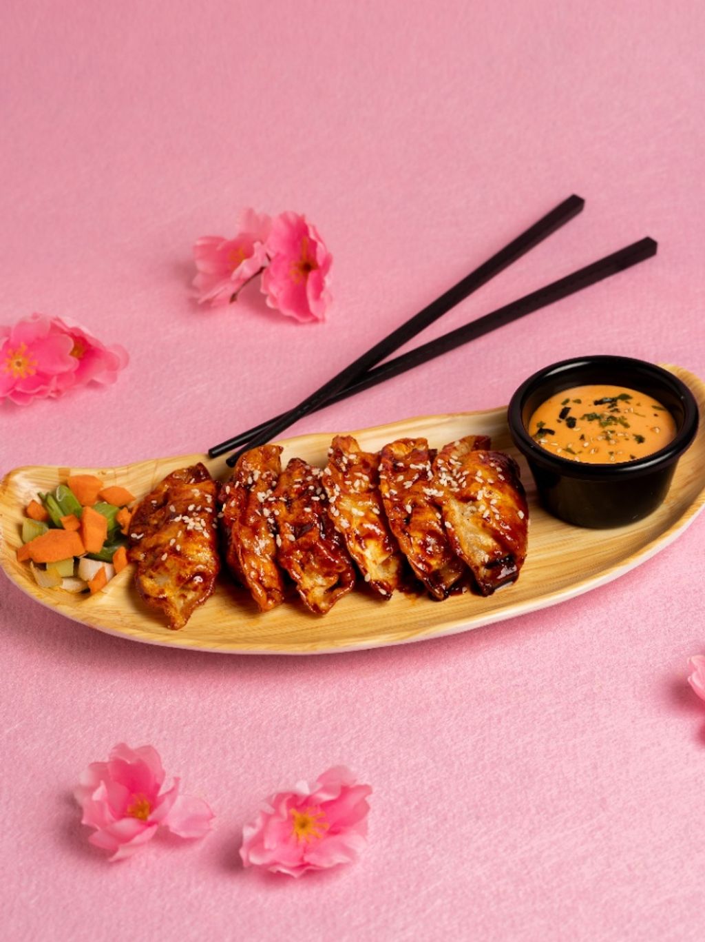 Orden de 6 piezas de empanadas coreanas fritas, rellenas de carne de credo y verduras. Bañadas en salsa picante coreana. Todo cambio tiene costo adicional.