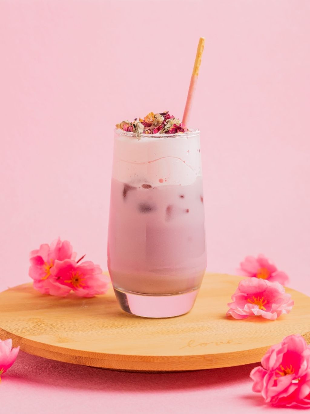 Bebida a base de taro milk tea, con crema de fresa. Pídelo en las rocas o caliente. Todo cambio tiene costo adicional.