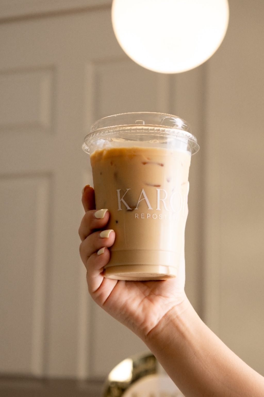 Latte frio. Bebida con espresso , hielos y leche entera o deslactosa, agrega un pump de su jarabe preferido.