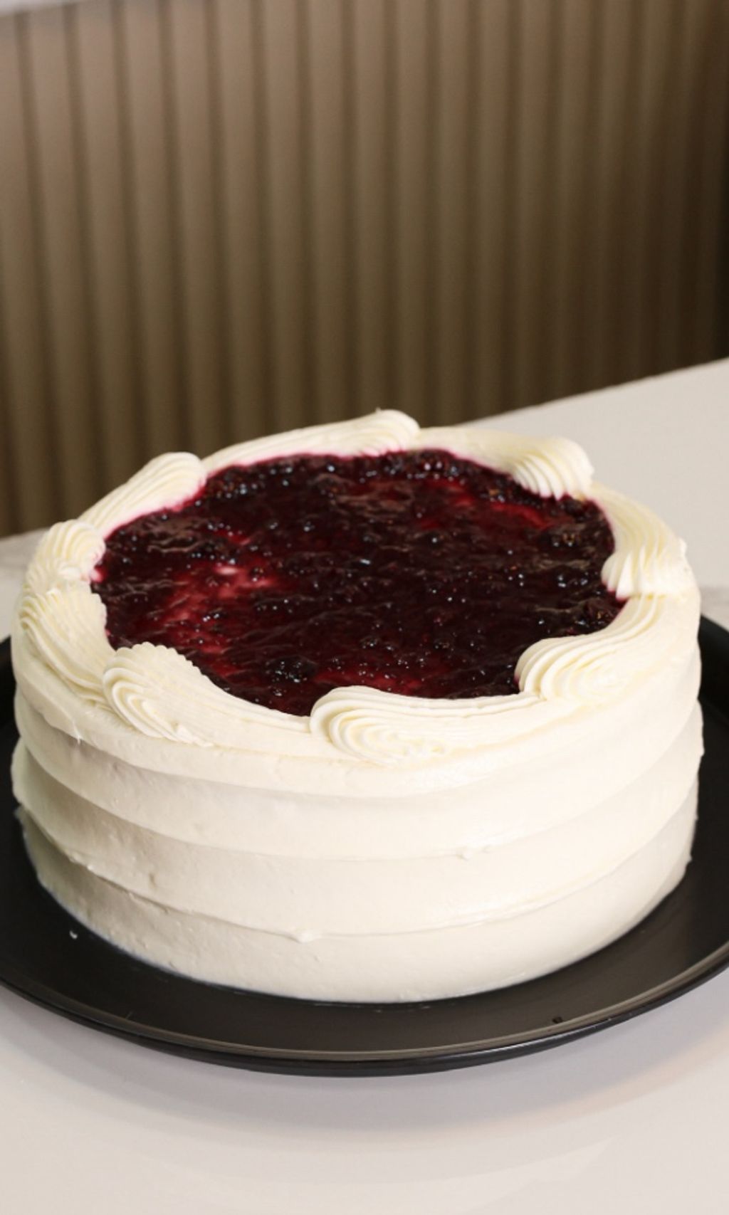 Pastel tres leches relleno de nuestro cremoso betún de queso crema con mermelada 100% de fruta natural.