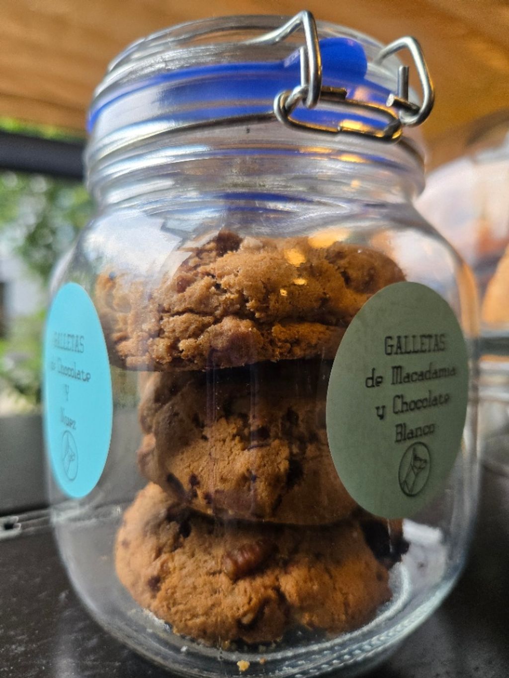 Galletas estilo New York Hechas con nuez de macadamia y chocolate blanco. Y chocolate oscuro con nuez