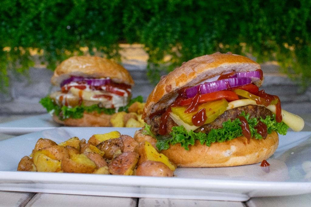 150gr de carne de res, queso manchego, cheedar, oaxaca lechuga, jitomate, cebolla morada.