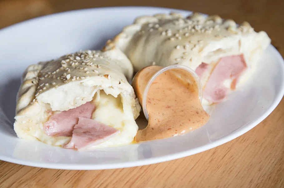 Empanada italiana rellena de queso manchego y jamón de pavo, incluye aderezo chipotle.