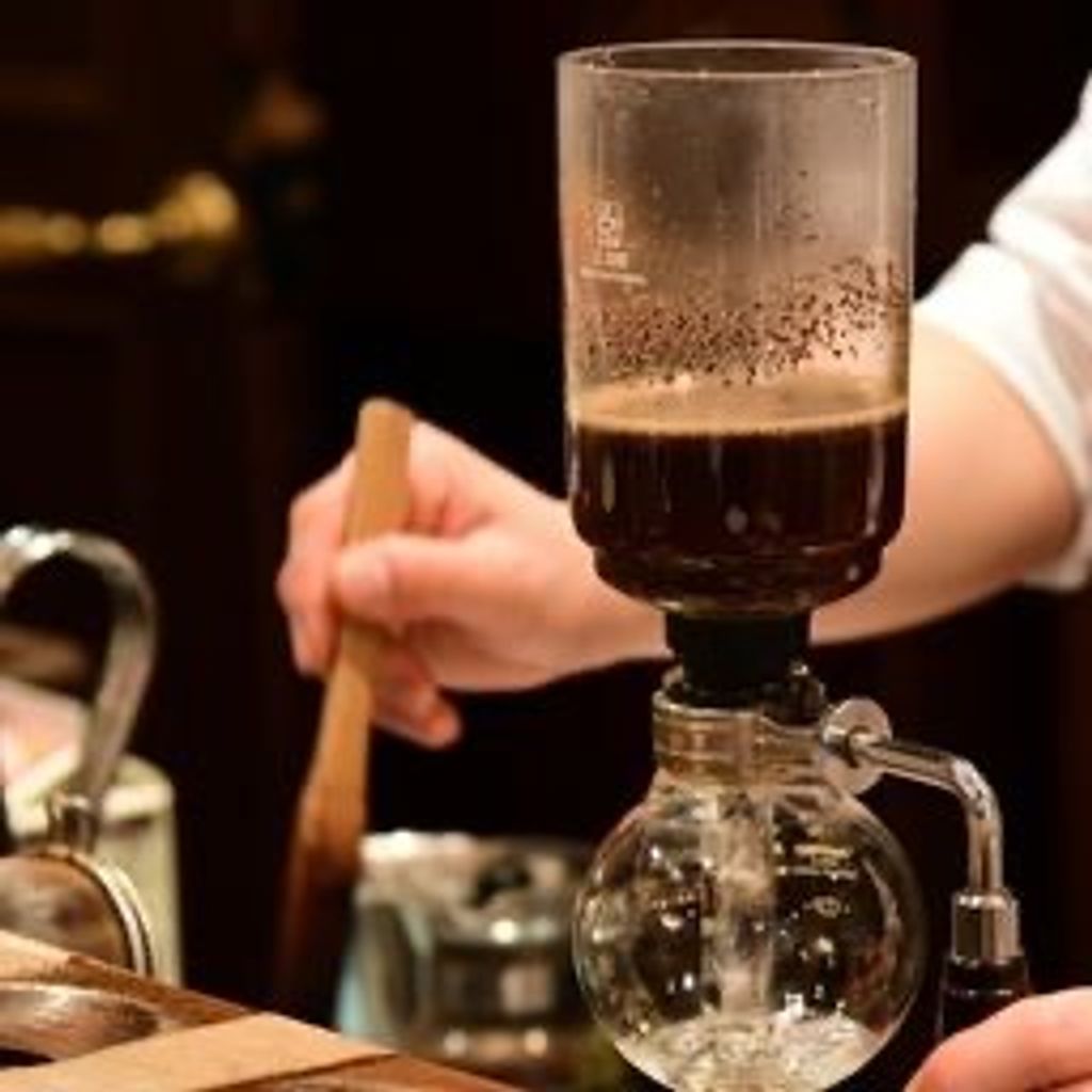 Método al vacío donde el agua sube por calor y extrae el café. El resultado es una taza limpia, aromática y visualmente espectacular. Tiempo de preparación: 15 a 20 minutos.