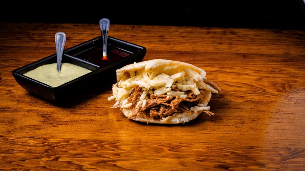Arepa rellena de carne mechada con queso manchego