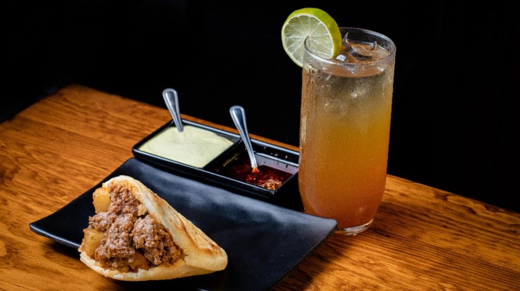 Arepa rellena de carne molida con zanahoria y papa.