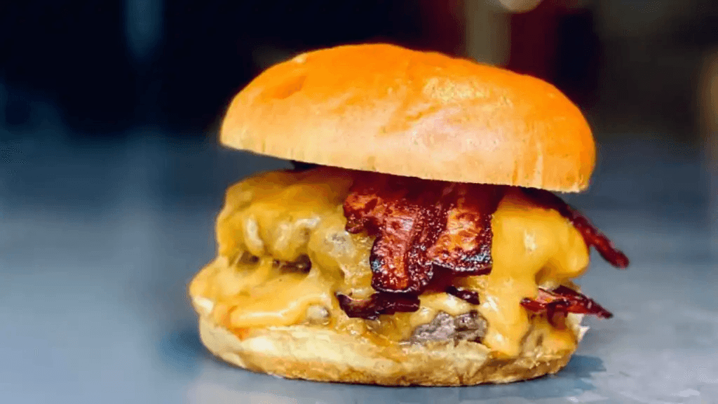 Hecha De 180 Grs de molida de Ribeye, Queso AMERICANO, Aderezo Grill Cebolla ASADA, Mermelada de Tocino y pepinillos