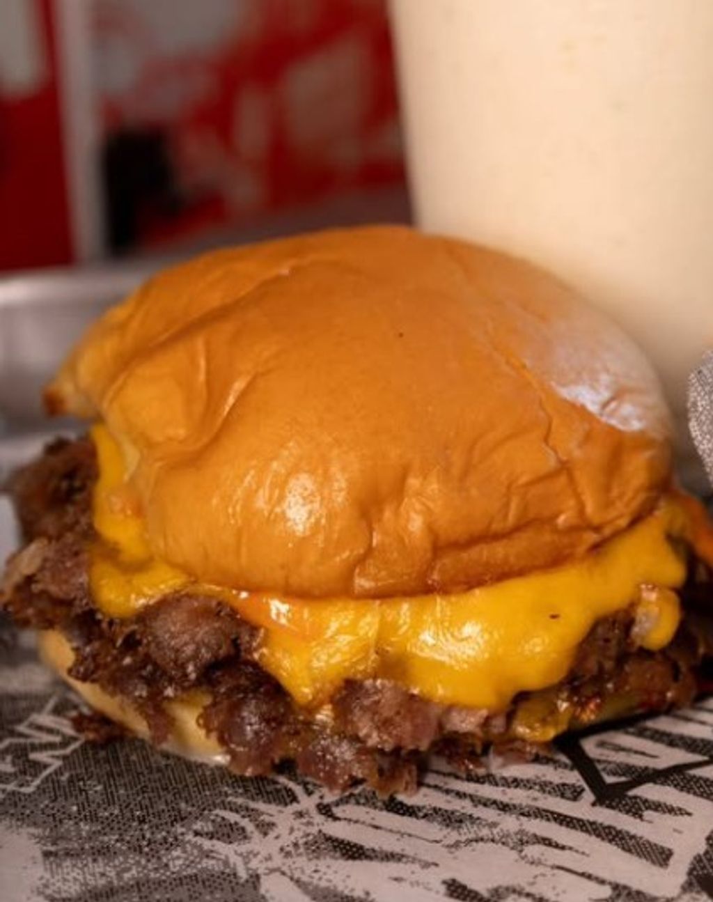 Hecha De 90 Grs de molida de Ribeye, Queso AMERICANO, Aderezo Grill Cebolla ASADA, Mermelada de Tocino y pepinillos