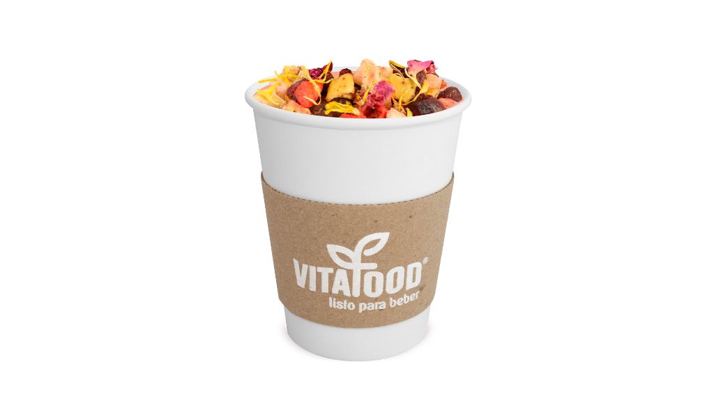 Arándano, manzana, fresa, caléndula, menta, pétalos de rosa y betabel en polvo.
